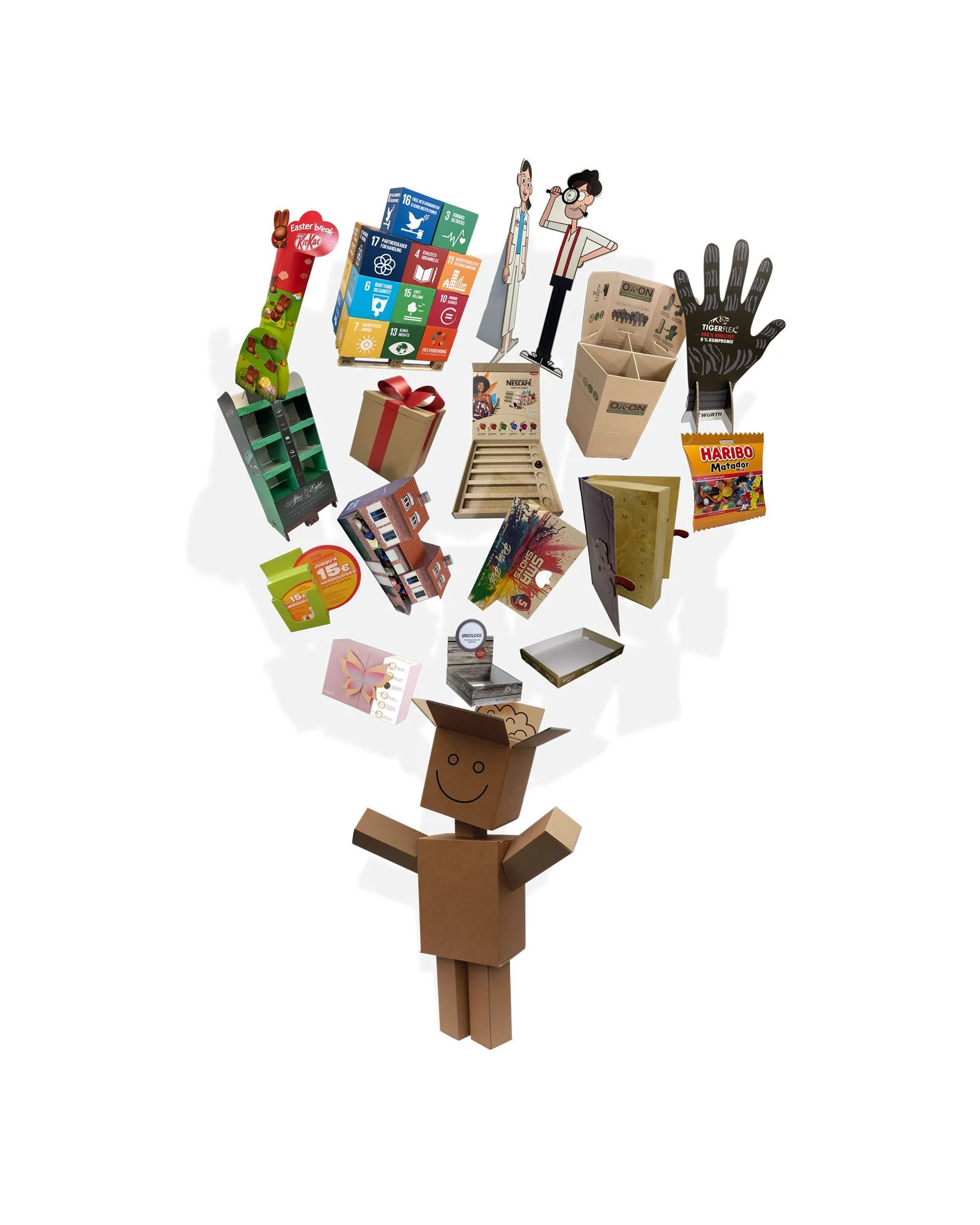Hos os er der ingen begrænsninger, når det kommer til at skabe unikke og effektive løsninger inden for emballage, displays og messestande. Uanset hvilken form, funktion eller udtryk du ønsker, står vores erfarne konstruktører og kreative grafikere klar til at gøre dine idéer til virkelighed – altid i tæt samarbejde med dig.